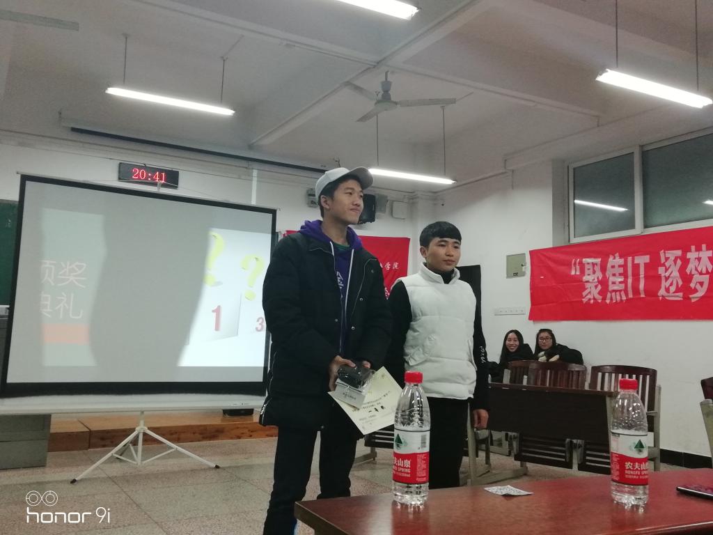 活动旨在让同学们更加了解电脑方面的知识,增强协会干事们的信心和热情。活动开始,由青年喜剧社给我们带来了暖场节目,随后,主持人介绍到来的嘉宾及选手并宣布计算机知识竞赛正式开始。主持人介绍了比赛规则后,由于第一组未到场,由第二组和第三组进行比赛,双方依次答题。接下来是第四组第五组一直到第十组。之后进行的是观众抽奖环节,抽取了三名幸运儿。然后是四进二的比赛,并选出了三等奖的获得者。比赛之余,由外联部的干事为我们表演了精彩的歌舞节目《东西》并进行了观众的第二次抽奖。最后进行了冠亚军的争夺,角逐出了第一名,由各个会长颁发奖状,并由杨志强会长发言,宣布活动圆满结束。