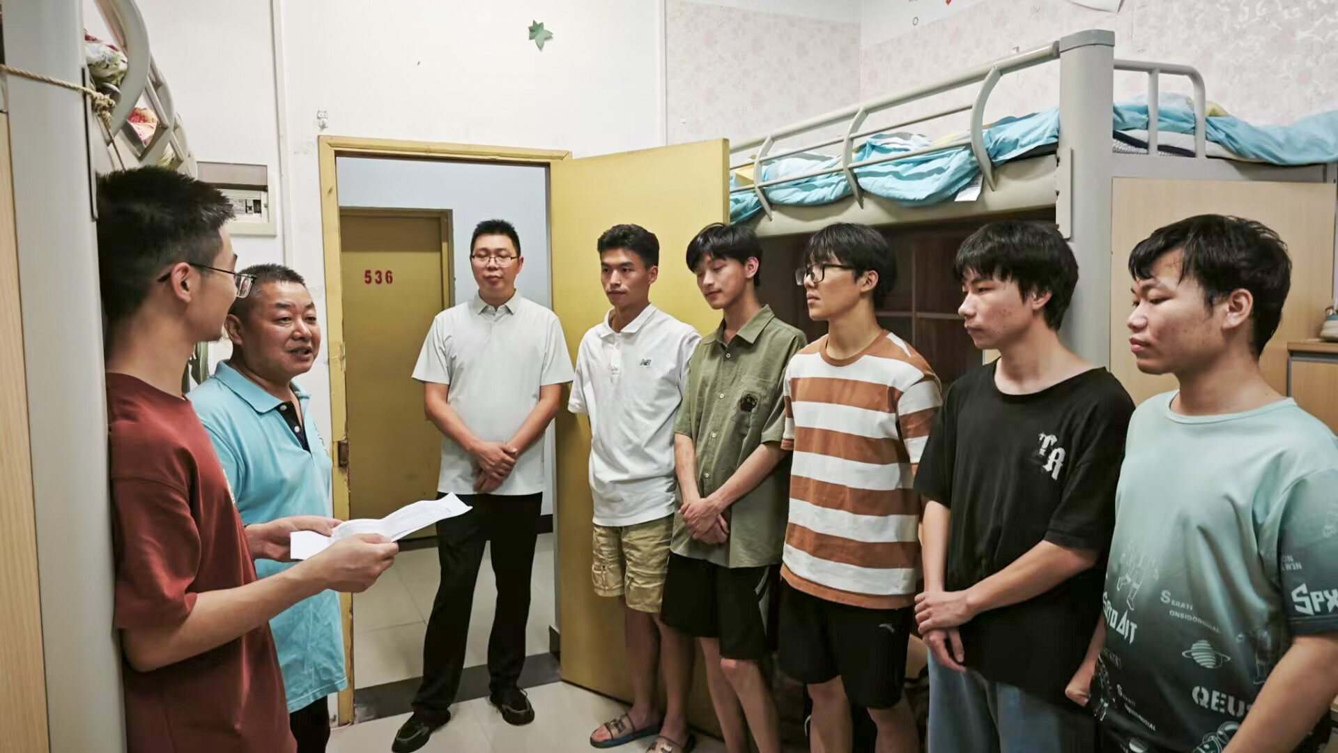 在桂花苑5舍531宿舍,廖书记与学生亲切交谈,“学院党政一直想着在酷暑中备赛和考研复习的同学们,期望同学们能静心学习,努力达成自己的目标,也希望同学们遵守学校纪律,注意防中暑、防溺水和用电安全。”