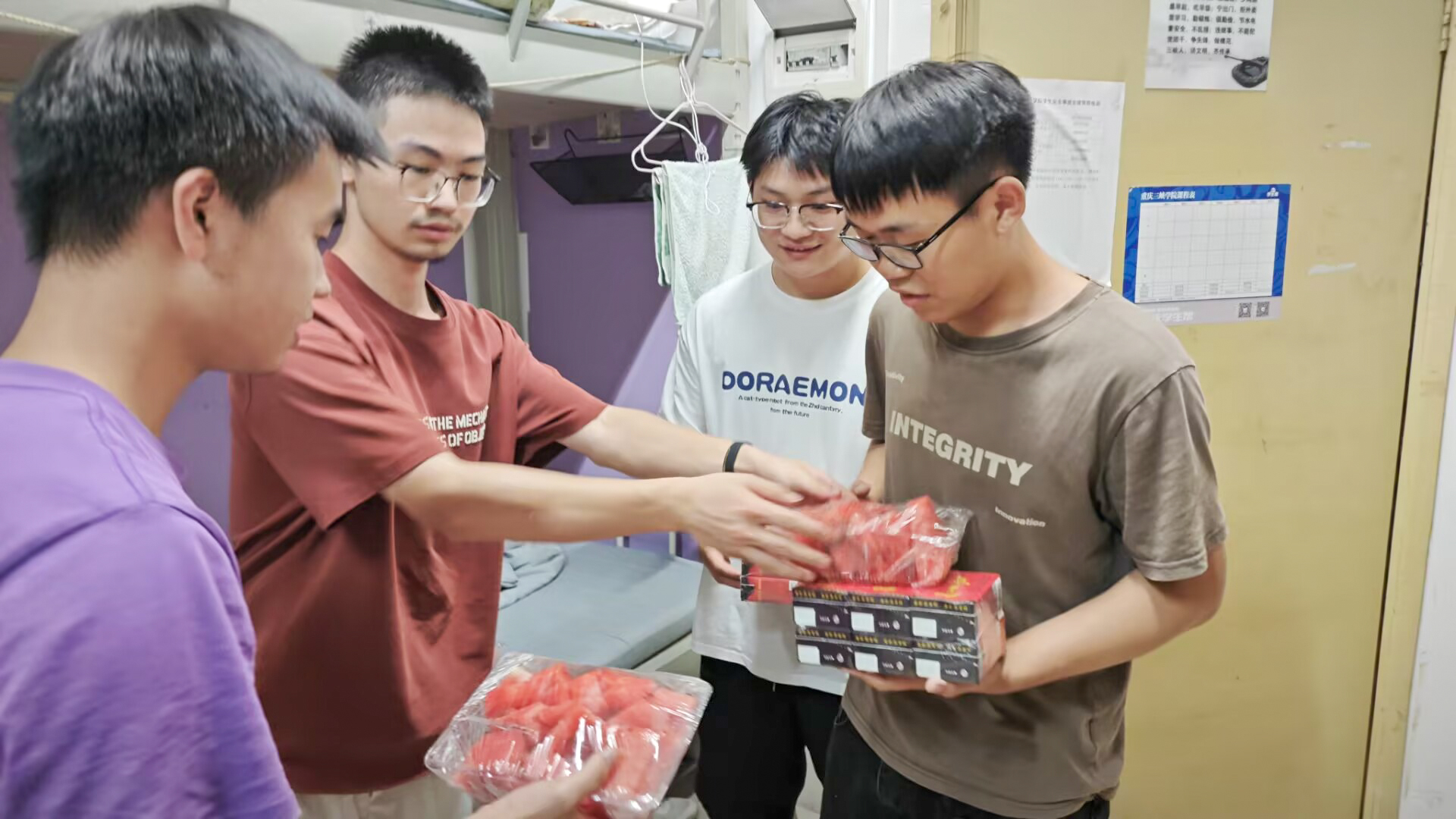 学院还给暑期留校学生发放了王老吉凉茶、西瓜等防暑降温物品。