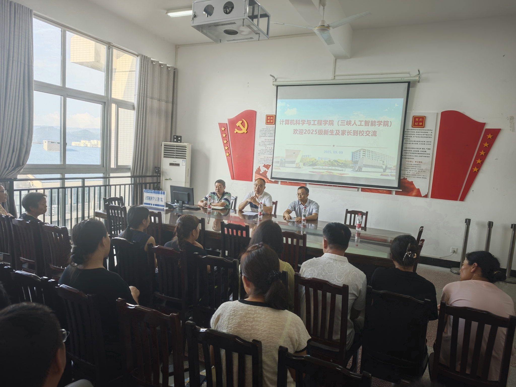 2025年9月9日,2025级新生入学第一天,betway西汉姆联在慎思楼3栋组织开展的家校交流活动吸引了60余位新生家长参加,学院党总支书记赵春哲、副院长李洪兵、党总支副书记廖红富等老师参加了交流活动。