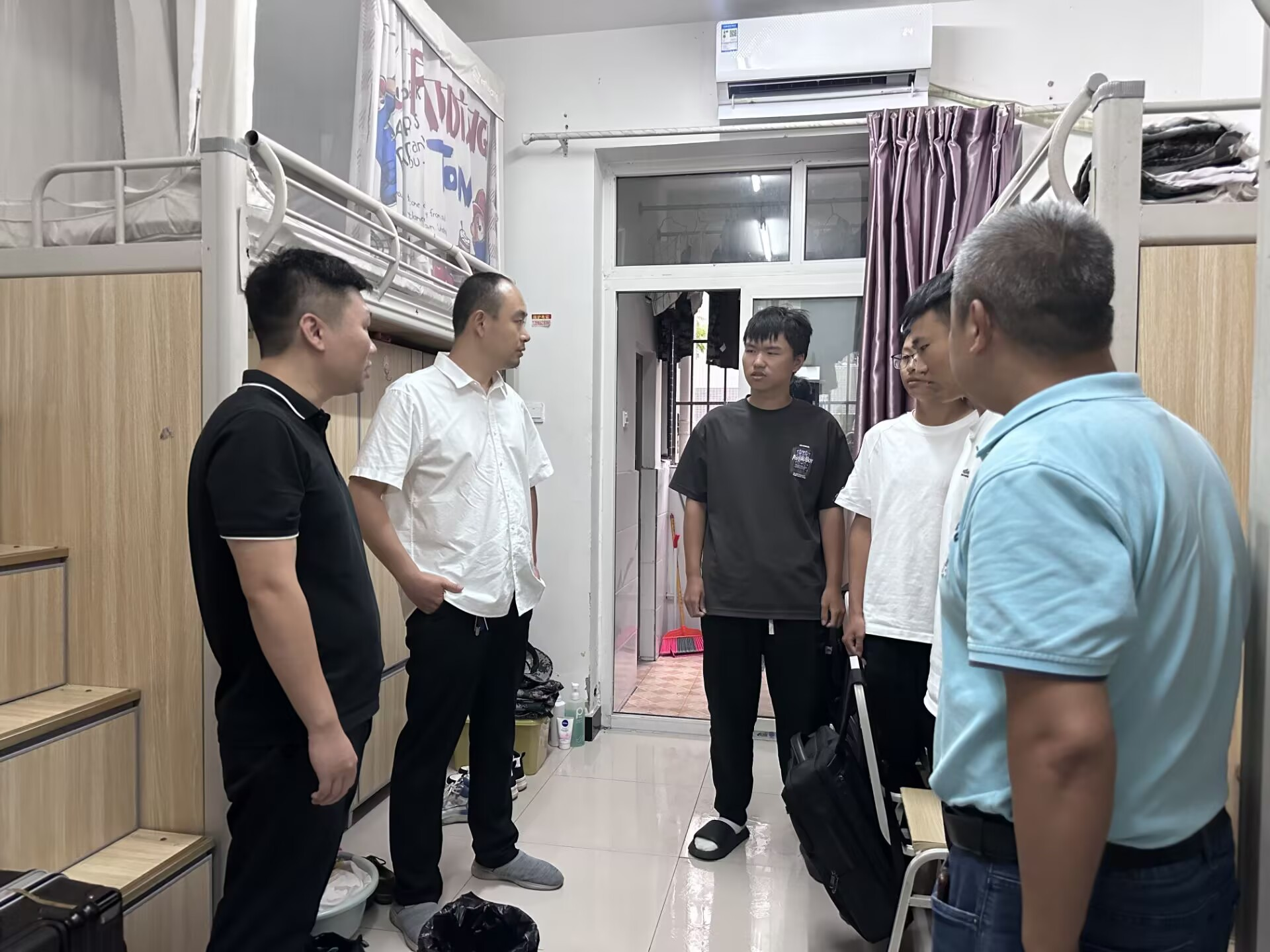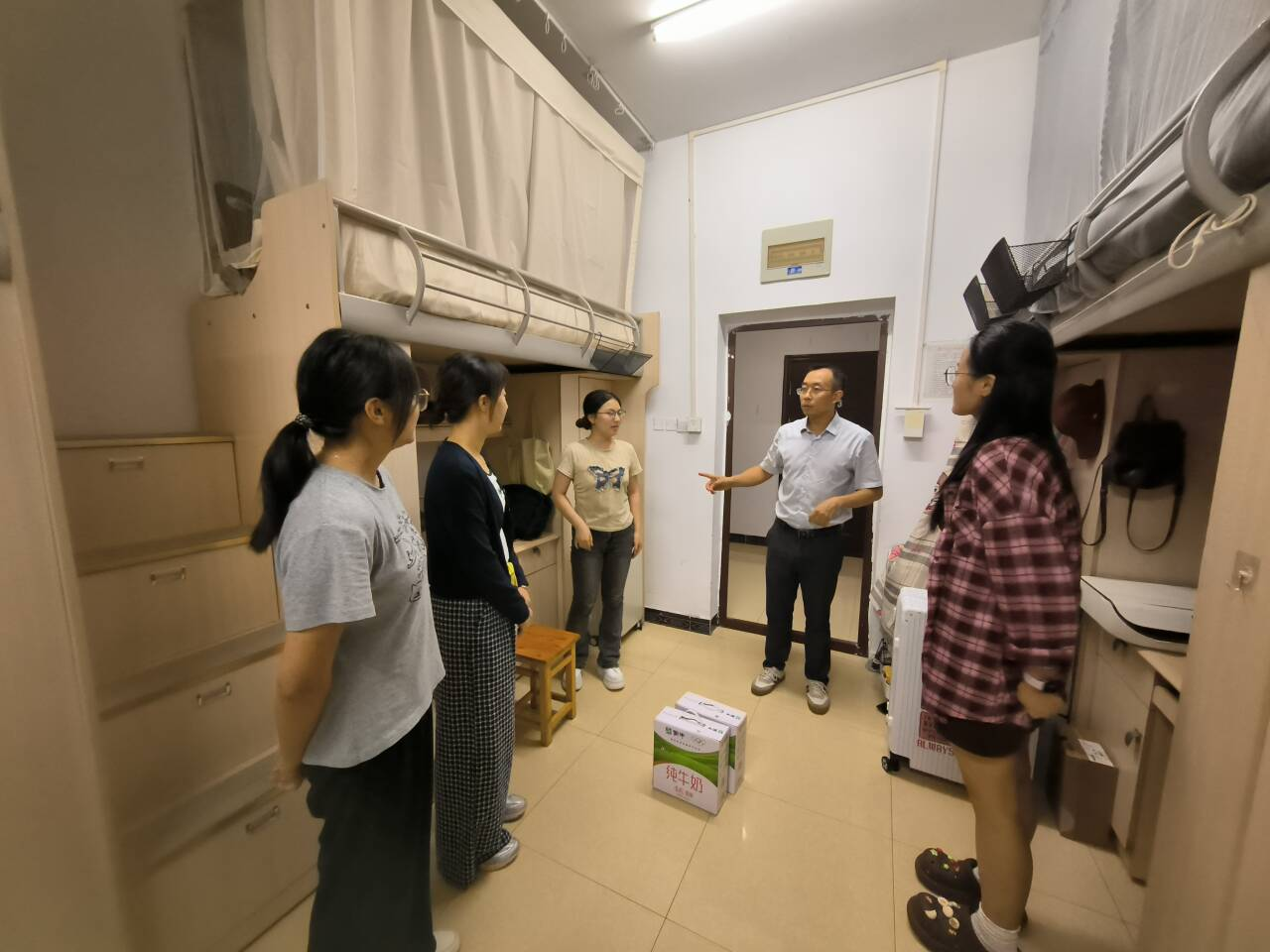 中秋佳节来临之际,betway西汉姆联领导班子在9月29日带领全体辅导员走进寝室和教室,对学院家庭经济困难学生、2025级新生等进行了走访慰问。